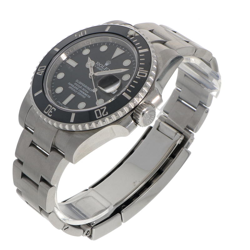 Ref. 116610LN brought the Submariner into the modern era with the introduction of the Cerachrom Bezel (extremely scratch-resistant ceramic), the Super Case (thicker case profiles and lugs), and the Maxi Dial (larger markings). The stainless steel Oyster bracelet features a highly functional Glidelock extension system in the clasp. The watch is powered by the automatic Rolex caliber 3135.
