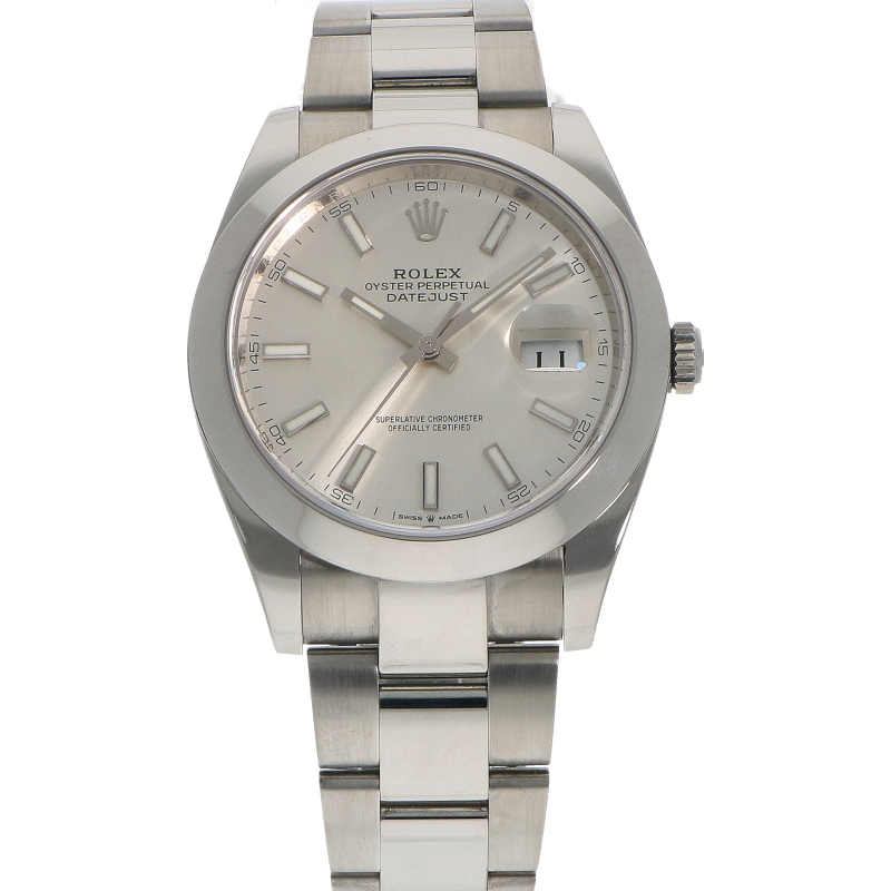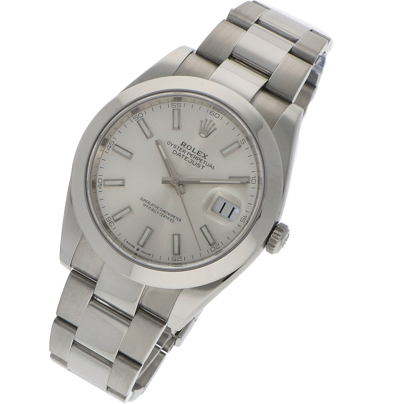 Ref. 126300 is een hedendaagse uitvoering van de volledig stalen DateJust 41. Deze DateJust kenmerkt zich door zijn gladde, gepolijste bezel en de zilveren wijzerplaat met witgouden streep-uurmarkeringen met Chroma Light. Het horloge wordt aangedreven door het automatische uurwerk cal. 3235 en wordt geleverd op een Oyster-band.