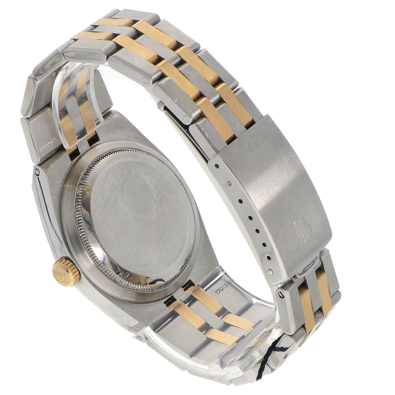 In tegenstelling tot ronde, klassieke kasten van de reguliere DateJust, heeft de 17013 een zeer uitgesproken uiterlijk. De kast is 36mm, maar oogt groter door de hoekige vormen en scherpe lijnen. De band loopt vloeiend over in de kast zonder traditionele ‘lugs’. De 17013 is de Rolesor- uitvoering, wat betekent dat het horloge is gemaakt van een combinatie van roestvrij staal en 18- karaats geelgoud. Het hart van de 17013 is het Rolex kaliber 5035 kwartsuurwerk. Een kenmerk van de Oysterquartz is de luide, mechanische ’tik’ die elke seconde te horen is! Er zijn relatief weinig OysterQuartz horloges geproduceerd, waardoor de 17013 vrij zeldzaam is op de vintage markt.