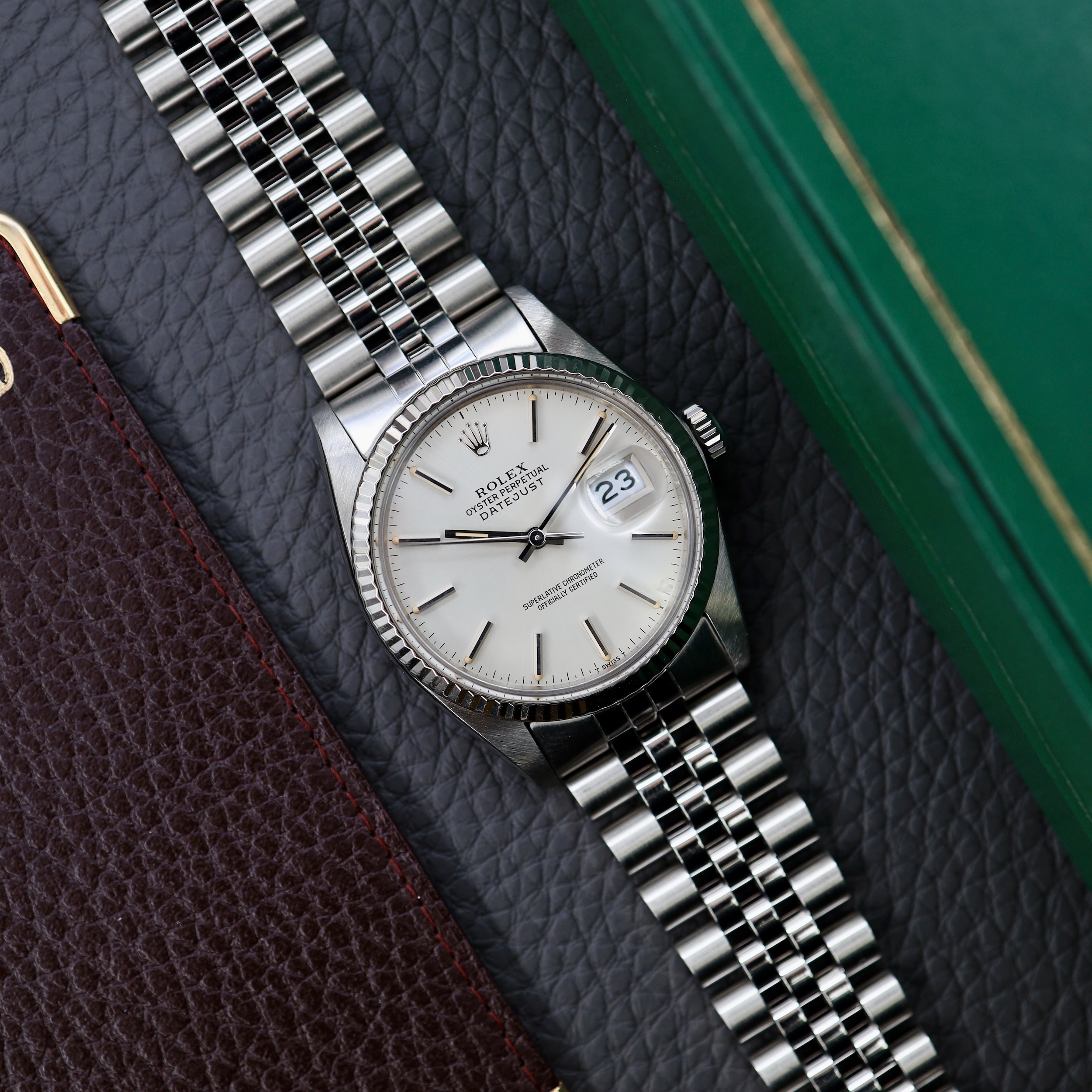 Dit horloge wordt geleverd met een luxe doos van onze winkel en het originele garantiecertificaat van Rolex uit 1983.