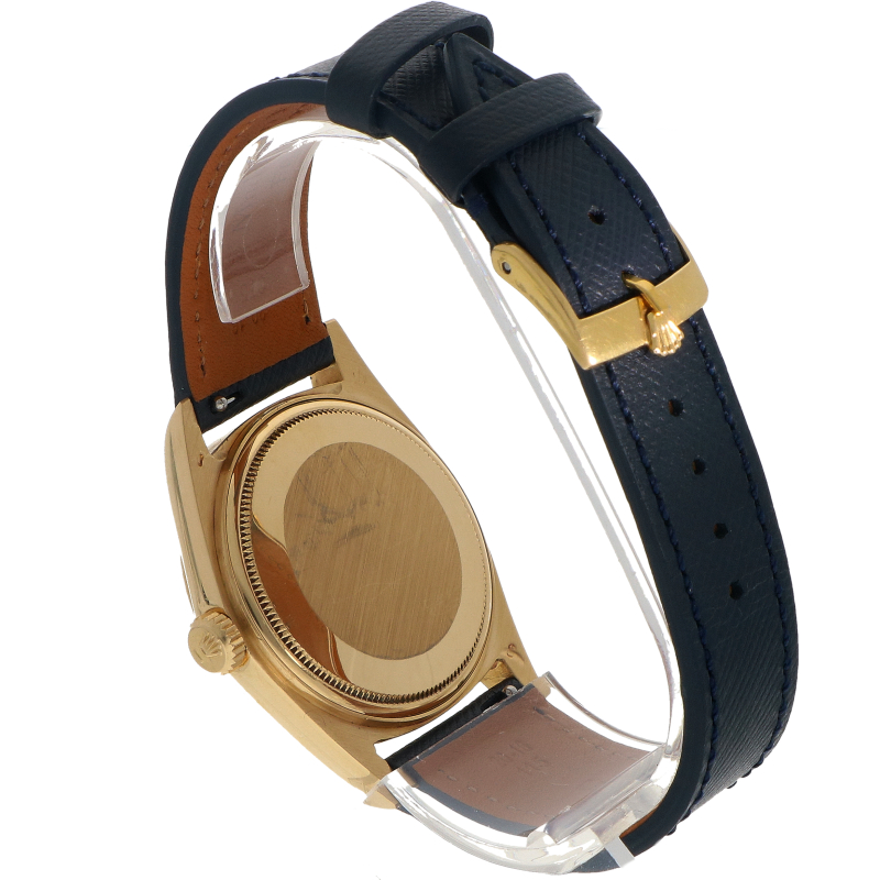 De Rolex DateJust 16018 is een absoluut icon uit de jaren ’80. De klassieke 36mm kast is volledig gemaakt uit 18- karaats geelgoud. De 16018 behoort tot de eerste generatie DateJust’s met een saffierglas. Het horloge wordt aangedreven door cal. 3035 automatisch uurwerk, het eerste DateJust- uurwerk met een Quickset- functie. Geleverd op een nieuwe lederen band.