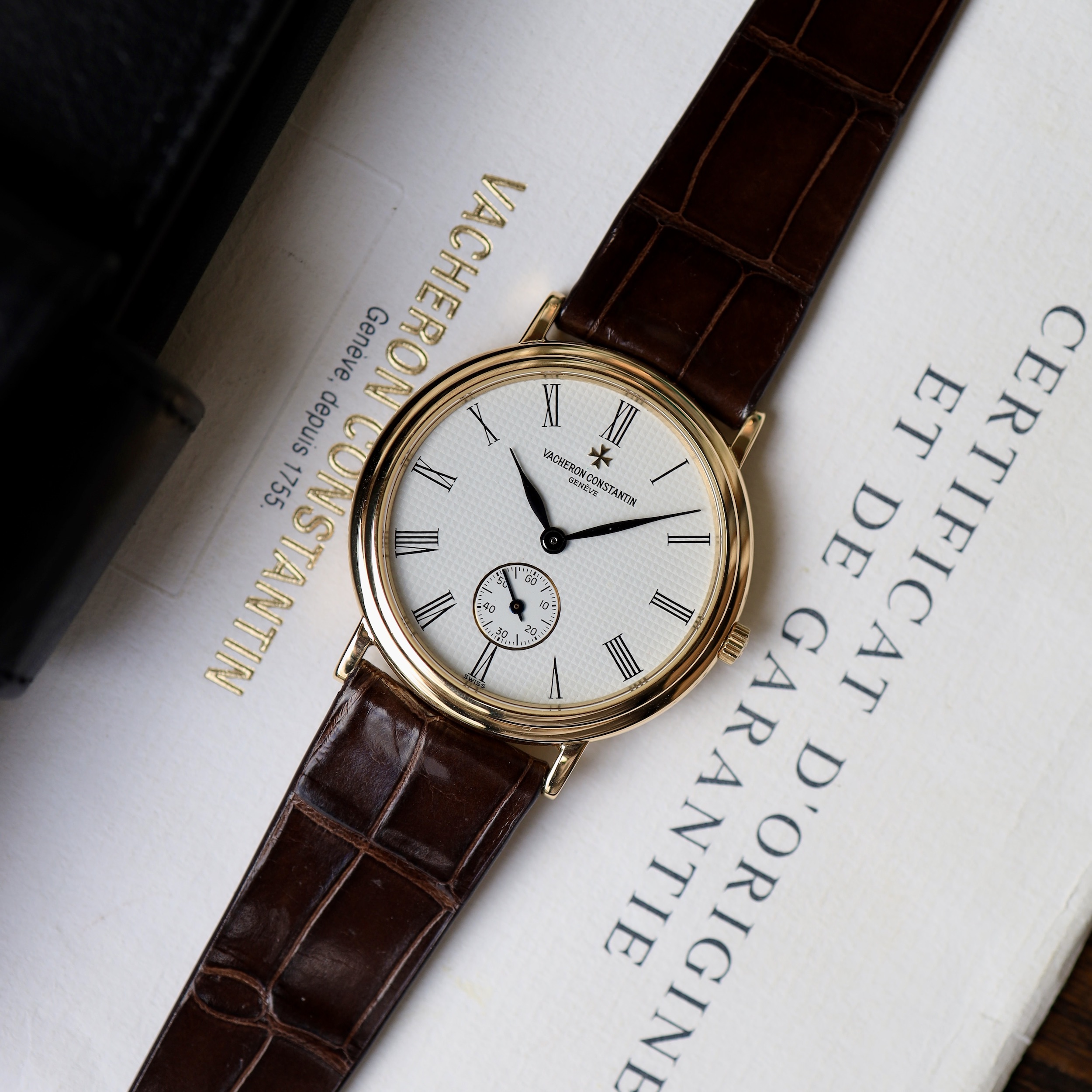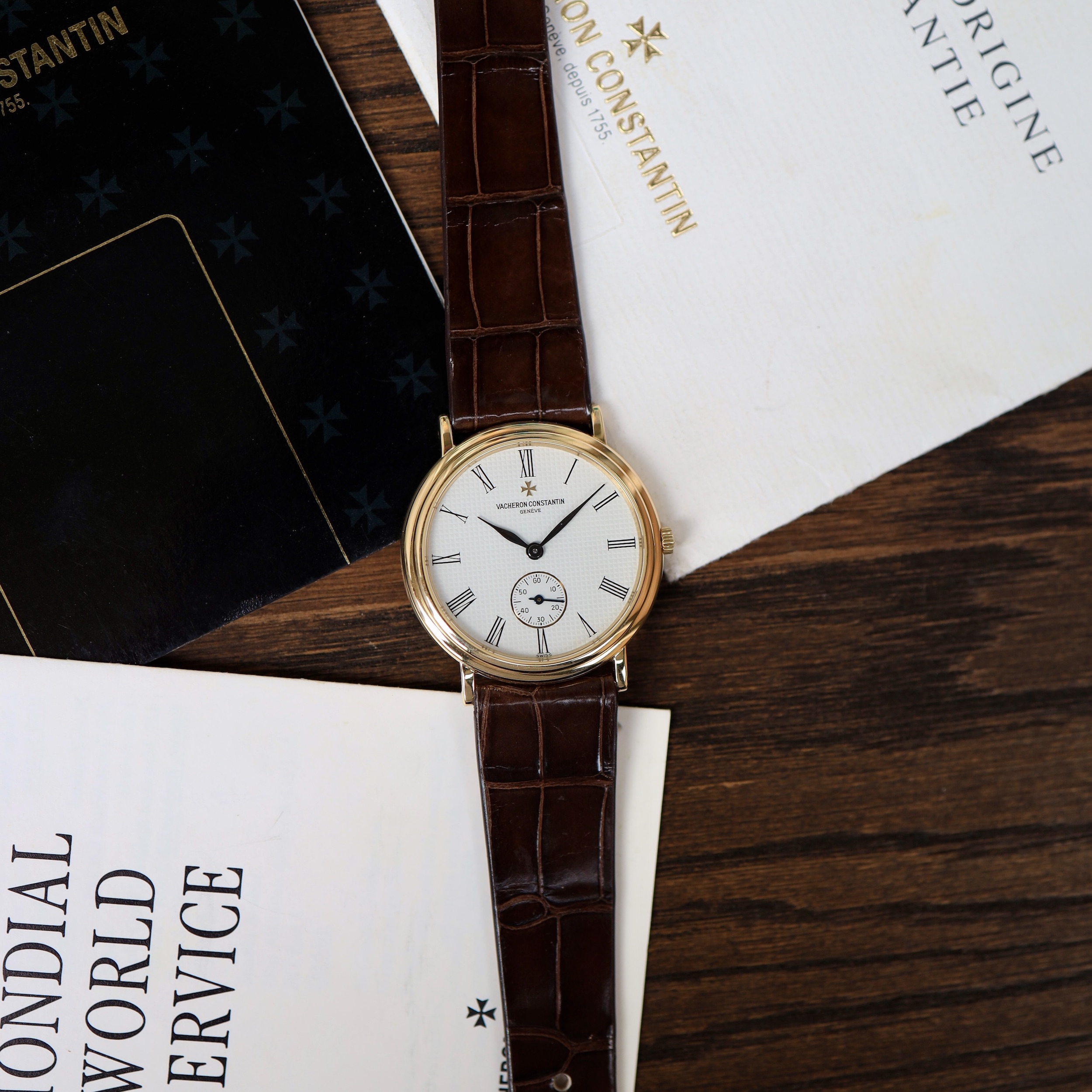 Dit horloge wordt geleverd met de originele pouch en documentatie van Vacheron Constantin uit 1990.